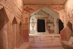 Znajdujące się w pobliżu liczne jaskinie wapienne stanowiły miejsca pochówków z III-II w. p.n.e. Zawierały one prywatne okazałe groby typu „kochim” (nazywane też „sydońskimi”) zdobione malowidłami, a także skromne zbiorowe kolumbaria.