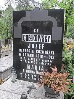 | 3. | Szczęsny Chełkowski (1901–1977) | Powstaniec wielkopolski; wraz ze starszym bratem Franciszkiem wspomagał Marię Chełkowską w jej działalności na rzecz przyłączenia Warmii i Powiśla do Polski. Został odznaczony Wielkopolskim Krzyżem Powstańczym i Krzyżem Kawalerskim. W 1924 roku poślubił Krystynę Urbanowską. Miał sześcioro dzieci. Szczęsny i Krystyna Chełkowscy pochowani są w Starymgrodzie. | |