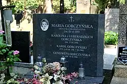 - ↑ Cmentarz Stare Powązki: KAROLINA GORCZYŃSKA, [w:] Warszawskie Zabytkowe Pomniki Nagrobne [dostęp 2021-07-20].