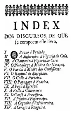 - ↑ Sara Augusto. O Papagaio Ilustrado – lição e exemplo na ficção barroca. „Máthesis”. 14, s. 137, 2005. ISSN 0872-0215.