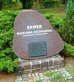 1 października 1988 roku na Osiedlu Młodych, w pobliżu skrzyżowania ul. Stanisława Moniuszki i Juliana Tuwima, odsłonięto kamień upamiętniający Mariana Rissmanna. W 2008 roku pierwotny głaz zastąpiono większym[2].