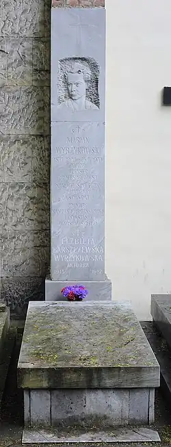 - ↑ Cmentarz Stare Powązki: MARIAN WYRZYKOWSKI, [w:] Warszawskie Zabytkowe Pomniki Nagrobne [dostęp 2020-06-13].