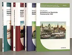 - ↑ Heiko Wartenberg: Archivführer zur Geschichte Pommerns bis 1945. T. Staatsarchiv Stettin (Bd. 24). Oldenbourg, 2008, s. 315. (okładka: Wały Chrobrego w Szczecinie, siedziba Rejencji szczecińskiej, niem. Regierungsbezirk Stettin)