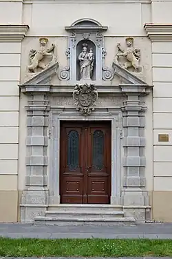 Tablica pamiątkowa na elewacji upamiętnia działalność w Trnawie biskupa Štefana Moyzesa, założyciela i pierwszego prezesa Macierzy Słowackiej.