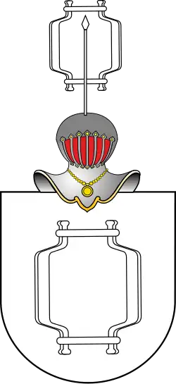 W polu barwy nieznanej chomąto; Klejnot: włócznia w słup a na niej godło.