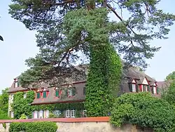Dworek Bollschweil od strony otoczonego murem ogrodu