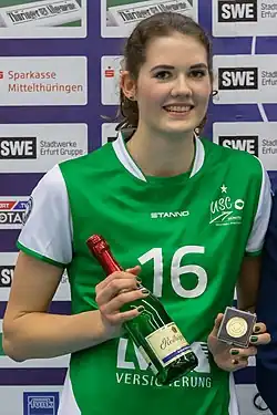 - ↑ Volleyball: Schweriner SC holt Supertalent Marie Schölzel. ostsee-zeitung.de. (niem.).