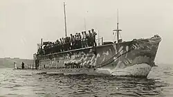 - ↑ Chała 2019 ↓, s. 74 podaje, że wyporność nawodna wynosiła 544,5 tony, a podwodna 633,64 tony.