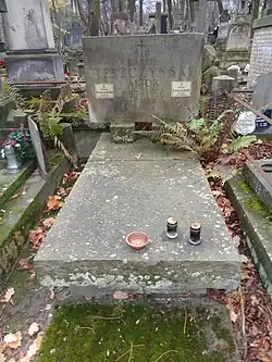 Został pochowany na cmentarzu Powązkowskim[1][2].