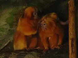Marmozeta lwia[9] (Leontopithecus rosalia) – gatunek południowoamerykańskiego ssaka naczelnego z rodziny pazurkowcowatych (Callitrichidae). Zamieszkuje lasy deszczowe południowo-wschodniej Brazylii. Zasięg występowania gatunku jest ograniczany z powodu fragmentacji i zmniejszania areału lasów. Żyje w grupach rodzinnych zbudowanych wokół samca i samicy. Tworzy zwykle małe populacje, zagrożone chowem wsobnym. Spożywa pokarm roślinny i zwierzęcy. Podlega ochronie i poddawany jest reintrodukcji.