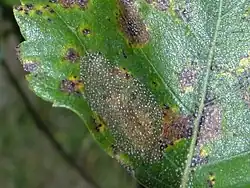 ![]() Porażony liść i pęd brzozy brodawkowatej | |