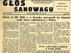 - 1 2 3 Dzień 6. III. 1930. roku w Sanoku przeszedł do historii walk klasy robotniczej w Polsce. „Głos Sanowagu”, s. 1, nr 2 (7) z 28 lutego 1955.