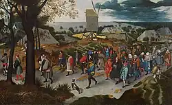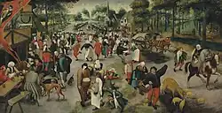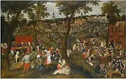 | Wiejski kiermasz św. Sebastiana i uroczystości weselne | 1567 | olej na desce | 110,5 x 172 cm | kolekcja prywatna | sprzedany na aukcji domu aukcyjnego Sotheby's w 2015[10] | ![]() |