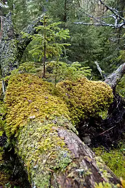 Leżące pnie drzew ochraniają też rosnące pomiędzy nimi młode drzewka (podrost) przed uszkodzeniem przez jelenie i inne ssaki roślinożerne[1].