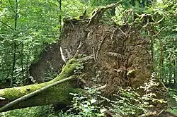 - wiatrowały (wywroty[15]) i wiatrołomy – całe pnie z korzeniami przewrócone przez gwałtowne wiatry lub tylko złamane[1][15]. Pojęcie wiatrołomy jest też używane jako synonim wiatrowałów.