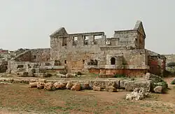 Qal’at Sim’an (arab. قلعة سمعان) to pozostałości kompleksu wzniesionego z inicjatywy cesarza Zenona Izauryjczyka w latach 470–480 w miejscu ascezy Szymona Słupnika (386–429)[23][4]. Do dnia dzisiejszego zachowały się pozostałości słupa oraz wybudowanego nad nim kościoła na planie krzyża – słup znajduje się pośrodku, na ośmiokątnym placu (prawdopodobnie oryginalnie zadaszonym kopułą), wokół którego zachowały się ruiny czterech naw[23]. Z powierzchnią ponad 5 tys. m² kościół był jedną z największych świątyń w historii i mógł pomieścić 10 tys. wiernych[23]. Kompleks był prężnym centrum pielgrzymkowym, przy czym pielgrzymi zatrzymywali się w nieopodal położonym miasteczku Dair Seman, ówczesnym Telanissos[23].