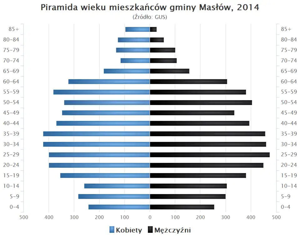 - Piramida wieku mieszkańców gminy Masłów w 2014 roku[1].