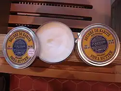 - Kosmetyka – masło shea jest stosowane w kosmetyce, jako środek nawilżający, zmiękczający skórę, kojący, uelastyczniający, przeciwzmarszczkowy, chroniący przed promieniami UV, przedłużający opaleniznę.