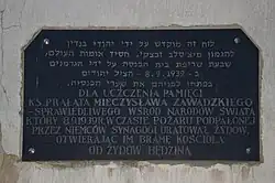 Dla uczczenia pamięci ks. prałata Mieczysława Zawadzkiego – Sprawiedliwego Wśród Narodów Świata, który 8.09.1939 r. w czasie pożaru podpalonej przez Niemców synagogi uratował Żydów, otwierając im bramę kościoła.