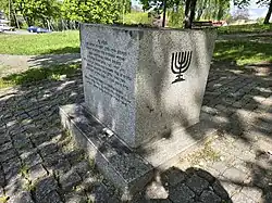 1 września 1993 roku, w miejscu, gdzie stała synagoga spalona przez Niemców, odsłonięto granitowy obelisk. Widnieje na nim inskrypcja w języku polskim i hebrajskim o treści:[44]