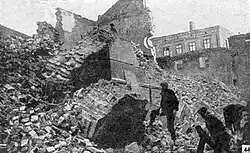 ![]() Niemiecki oficer oglądający ruiny spalonej poprzedniego dnia synagogi w Będzinie | |
