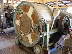 - pionowa – oś mechaniczna przechodziła przez ściany boczne beczki. Była to konstrukcja uproszczona, beczka nie posiadała żadnych wewnętrznych przegród.