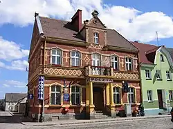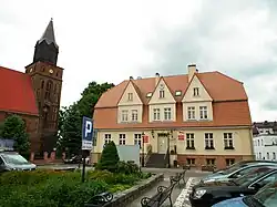 - Ratusz: znajduje się po północnej stronie kościoła Matki Boskiej Częstochowskiej, z fasadą w kierunku wschodnim. Obecny ratusz zbudowano w latach 1821–1827 na miejscu starszej budowli, prawdopodobnie z okresu średniowiecza. Ostateczny kształt dzisiejszego ratusza to rok 1920 (dobudowano wtedy kondygnację strychową). Obecnie siedziba Urzędu Miejskiego[7].