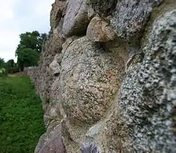 - Mury obronne: zachowane na całym obwodzie miasta, zbudowane z kamieni granitowych i z cegły. Wzniesione na przełomie XIII i XIV wieku, z nakazu wydanego w 1286. Zewnętrzną linię murów chroniły wały ziemne i fosa, pogłębiona w XV wieku. Fosa i wały zostały zlikwidowane w latach 1784–1785, zaś w 1838 rozebrano przedbramia. W miejscu dawnej fosy i wałów wytyczono w 1854 r. uliczkę obrzeżną. Dzisiejszy wygląd murów przetrwał od 1868 r., kiedy zburzono bramy wewnętrzne oraz część półbaszt z uwagi na budowę nowych dróg. Bezpośrednio za murami znajdują się ruiny gotyckiej kapliczki z XV w., która należała do dawnego szpitala trędowatych, wokół 8 starych lip nazywanych „Apostołami”, oraz wiekowy dąb nazywany „Judaszem”[7].