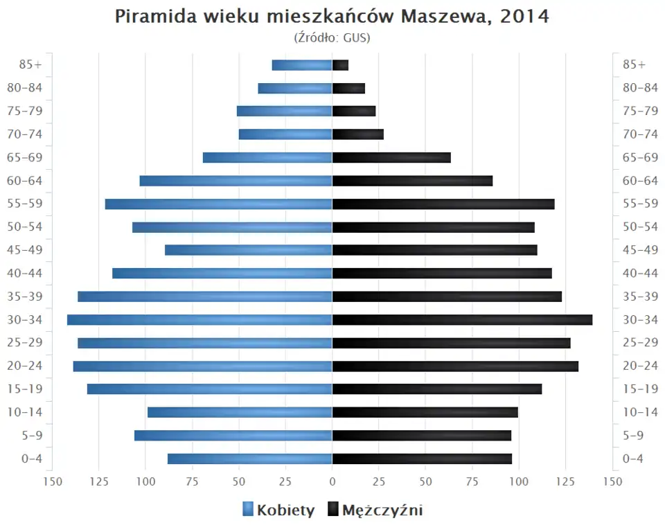 - Piramida wieku mieszkańców Maszewa w 2014 roku[1].