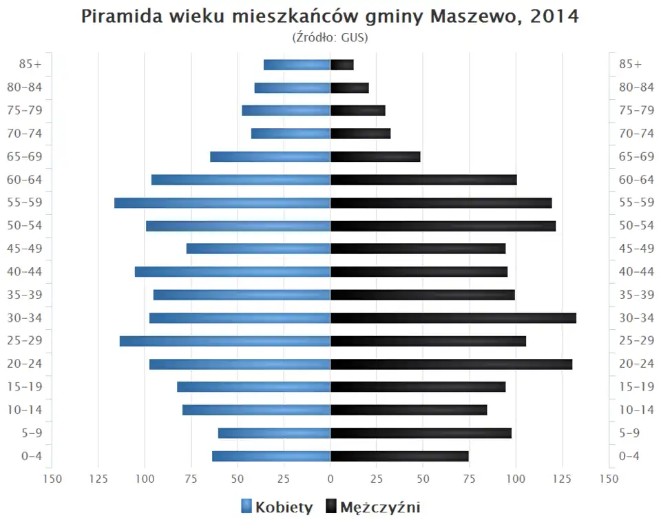 - Piramida wieku mieszkańców gminy Maszewo w 2014 roku[1].