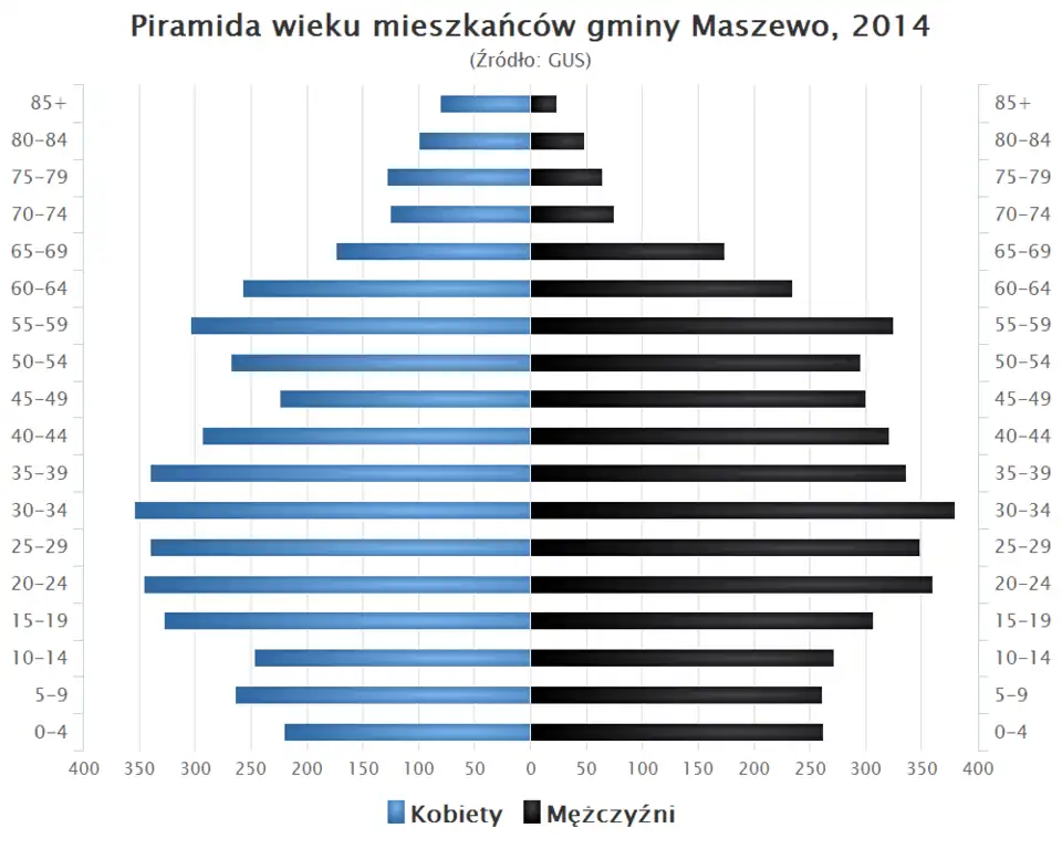 - Piramida wieku mieszkańców gminy Maszewo w 2014 roku[3].