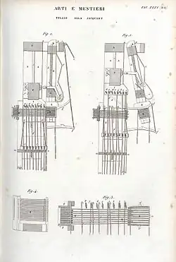 W 1805 roku Joseph Marie Jacquard opracował metodę sterowania nitkami osnowy za pomocą kart perforowanych. Otwory w odpowiednich miejscach karty kierowały zaczepami wybierającymi nitki osnowy w odpowiednim kolorze dla danego wzoru na tkaninie. Było to pierwsze w dziejach sterowanie maszyny za pomocą programu.