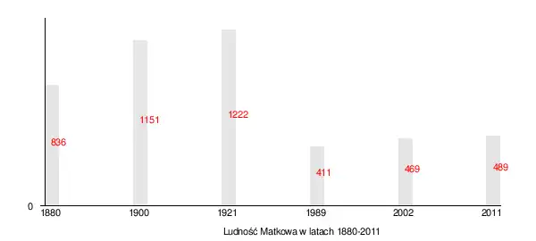 W 1989 Matków miał 411 mieszkańców (220 mężczyzn i 191 kobiet), a w 2011 – 469 mieszkańców.