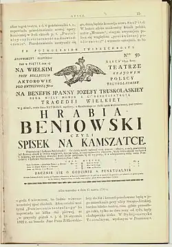 - August von Kotzebue, Graf Benjowsky oder die Verschwörung auf Kamtschatka (Hrabia Beniowski, czyli spisek na Kamczatce), 1795