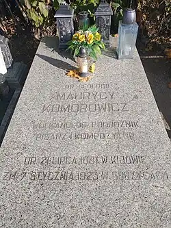 Pod koniec lat 80. XX w. staraniem czempińskich regionalistów, w szczególności Józefa Świątkiewicza, bezimienną mogiłę ozdobiła kamienna płyta nagrobna, przypominająca współczesnym i potomnym zasługi i dzieło życia Maurycego Komorowicza. Zapomniana postać tego wulkanologa, podróżnika, pisarza i kompozytora z niemałym trudem została także opracowana, przedstawiona i przypomniana przez prof. Wojciecha Narębskiego w „Pracach Muzeum Ziemi” nr 15 cz. I.
