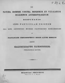 - ↑ De natura hominis contra monismum et vulgarem dualismum anthropologicum : disputatio cujus particulam priorem pro rite obtinendo munere professoris extraordinarii in facultate philosophica regii lycei hosiani, 1846 [dostęp 2023-01-27] (niem.).