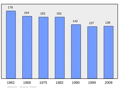 Według danych na rok 1990 gminę zamieszkiwały 142 osoby, a gęstość zaludnienia wynosiła 18 osób/km² (wśród 747 gmin Limousin Mazeirat plasuje się na 479. miejscu pod względem liczby ludności, natomiast pod względem powierzchni na miejscu 599.).