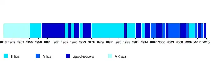 | 1952 | A-klasa (grupa III) | 2 | ?/? | ?:? | ? | ? | ? | [7] |