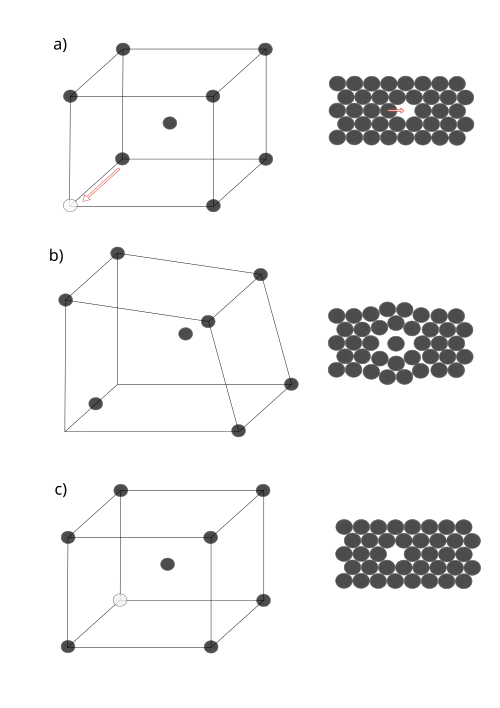 Zgodnie z teorią stanu przejściowego (TST) wartość energii swobodnej Gibbsa (bariera potencjału) odnosi się do punktu siodłowego. Ów punkt jest maksimum energii swobodnej Gibbsa potrzebnej do przeskoku atomu w sąsiednie miejsce równowagi. Miejsca równowagi są przedstawione na rysunku 1a i 1c. Punkt siodłowy (pośredni) jest przedstawiony na rysunku 1b[3]. W przypadku takiego modelu energia migracji jest dana relacją: