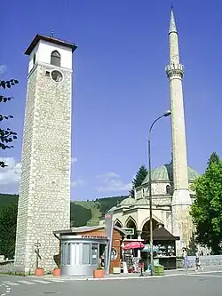 - ↑ Obecnie najwyższy minaret na Bałkanach (77 m) znajduje się we wsi Delimeđe (Sandżak).