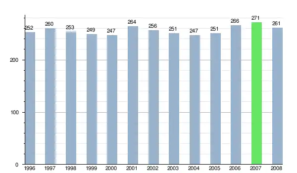 Zmiany liczby ludności w miejscowości Medovarce od 1996 roku[8].