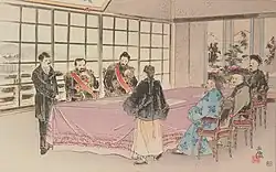 Za sprawą Hirobumiego Itō 7 lipca 1884 wprowadzono kazoku (jap. 華族; „szlachectwo”) – nowy system tytułów szlacheckich, wzorowany na brytyjskim pod względem hierarchii, lecz z nazewnictwem wywodzącym się z cesarskich Chin. Na kazoku składało się pięć tytułów; poczynając od najwyższego były to kolejno: książę (jap. 公爵 kōshaku), markiz (jap. 侯爵 kōshaku), hrabia (jap. 伯爵 hakushaku), wicehrabia (jap. 子爵 shishaku) i baron (jap. 男爵 danshaku).