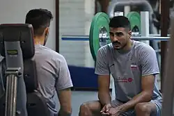 Mejsam Salehi w siłowni na zgrupowaniu reprezentacji Iranu w 2021 roku |