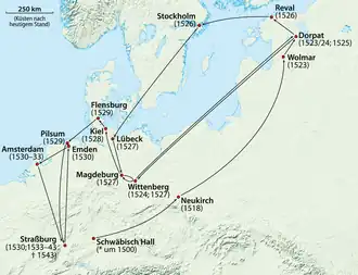 Sytuacja niepokojów, konfliktów z władzami i konieczności ucieczki powtórzyła się w Sztokholmie (Szwecja, 1526) i w Lubece (1527).