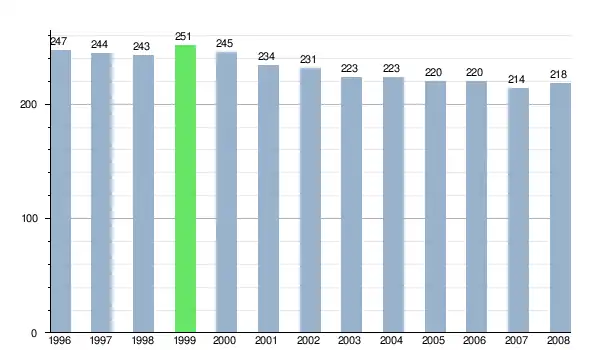 Zmiany liczby ludności w miejscowości Meliata od 1996 roku[8].
