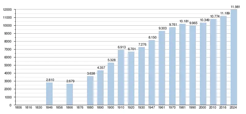 - Źródła: NIS, od 1806 do 1981= według spisu; od 1990 liczba ludności w dniu 1 stycznia