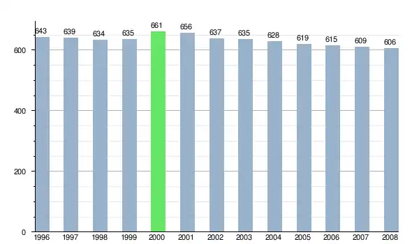 Według danych z dnia 31 grudnia 2012 roku, wieś zamieszkiwało 595 osób, w tym 296 kobiet i 299 mężczyzn[7].
