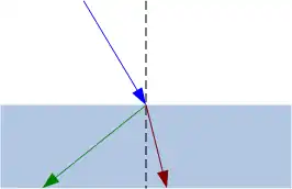 - załamują światło zgodnie z prawem Snelliusa dla negatywnej wartości refrakcji, czyli kąt załamania ma ujemną wartość (patrz diagram),