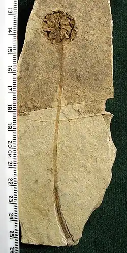 ![]() Metasequoia occidentalis liście z łodygą; wczesny Paleocen, Alberta, Kanada | |||
