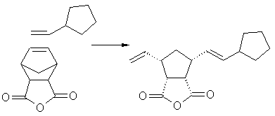 Polimeryzację z metatetycznym otwarciem pierścienia – ring-opening metathesis polymerization (ROMP) – Inną reakcją o dużym praktycznym zastosowaniu jest ROMP (z ang. ring opening metathesis polymerisation), czyli polimeryzacja przez metatezę z otwarciem pierścienia (polimeryzacja z metatetycznym otwarciem pierścienia):